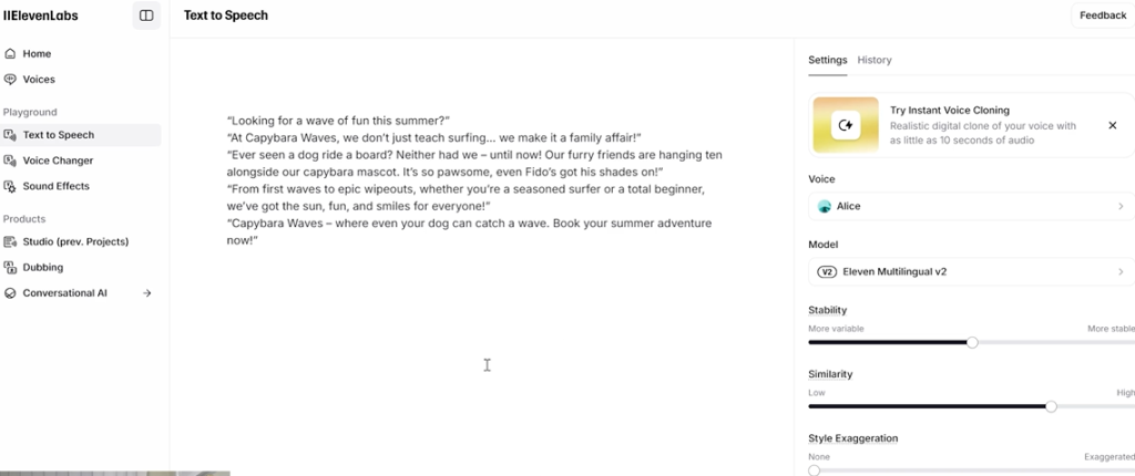 In the video, I take you directly into exploring Eleven Labs’ features. I begin by demonstrating the text‑to‑speech functionality—using a fun example inspired by our surf shop campaign featuring dogs on surfboards. As you watch, notice how I experiment with different voices (like the British “Alice” and a mature, engaging male “David”) to see which one fits our creative vision best.